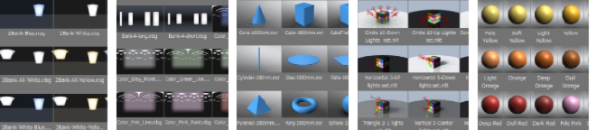 nStylerには「背景」「マテリアル」「ライトセット」「簡易モデル」の各ライブラリを標準ライブラリとして以下の各ライブラリを利用する事が可能です。好みのライブラリ選択して3Dシーンにドラッグするだけ素早く簡単に効果的なレンダリングを実行します。