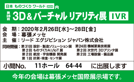 で開催されます、「3D&バーチャルリアリティ展 」(日本ものづくりワールド2020内)に出展いたします。