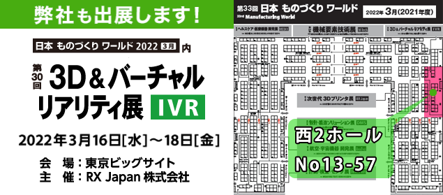 で開催されます、「3D&バーチャルリアリティ展 」(日本ものづくりワールド2022内)に出展いたします。