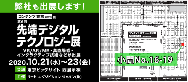[出展終了]第6回 先端デジタルテクノロジー展(コンテンツ東京2020)