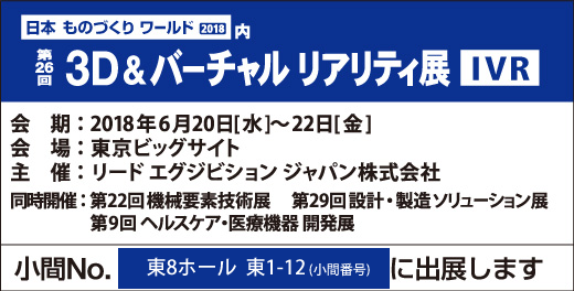 東京ビッグサイトで開催されます、「3D&バーチャルリアリティ展 」(日本ものづくりワールド2018内)に出展いたします。