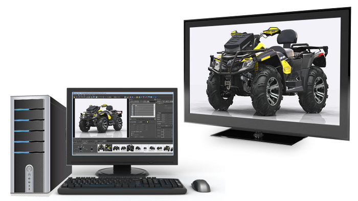 キーフレーム・タイムラインに対して任意のカメラ位置を登録する事で自動的にスムーズなカメラパスアニメーションが作成できます。この他にも、オブジェクトの移動・回転アニメーションやマテリアル及び3Dモデルの切替アニメーションなど各キーフレーム毎のシーン設定によりアニメーション製作を簡単に実現します。また、圧縮/非圧縮のムービーファイルをダイレクトに出力する事が可能です。