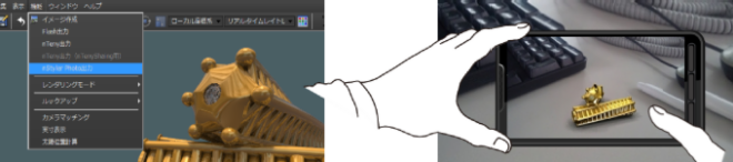 nStylerで製作した3DモデルをAndroid、iPhone、iPad2で表示させる為の専用データ形式になります。各端末のカメラ撮影の機能を利用して、実際の背景に3Dモデルを配置した様な合成表示を行います。nStylerでレンダリングした静止画は勿論、回転コンテンツとして出力する事も可能です。